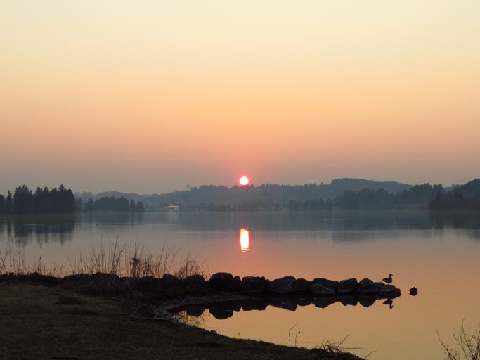Keywords: sunset abendstimmung lake still duck bank romance nature idyll