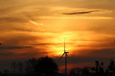 Keywords: sunset afterglow evening sky nature pinwheel wind turbine
