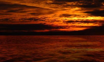 Keywords: sunset afterglow landscape back light evening sky clouds sea abendstimmung horizon water sun orange mirroring romantic red mood evening