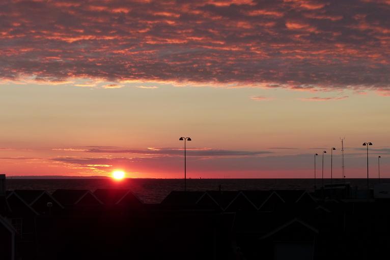 Keywords: sunset back light red sky sea abendstimmung evening sky holiday setting sun nature mood water denmark laesoe coast vesterø havn sunlight romantic atmospheric