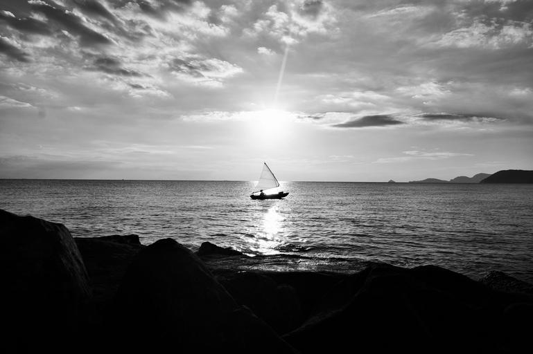 Keywords: sunset backlight boat sea sun sky atmosphere tranquility barbara bonanno bnnrrb black and white sensations bliss serenity