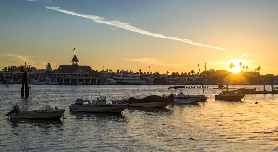 Keywords: sunset beach boat sea vacation water sunrise summer travel sun horizon coast landscape shore evening orange silhouette color romantic yellow outdoor sunlight balboa newport beach