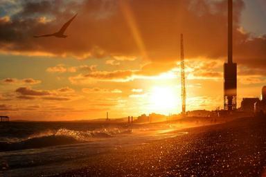 Keywords: sunset beach waves birds cranes industrial beach sunset ocean sea water summer nature sun sand landscape coast evening shore wave orange dusk color romantic peaceful outdoor sundown