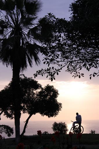 Keywords: sunset bicycle trees cycling sea bike summer people outdoor sport lifestyle man ride fun nature cyclist healthy travel activity young active leisure cycle sun recreation happy sunrise biking male person bike riding barranco lima peru