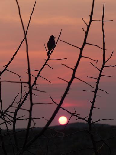 Keywords: sunset bird silhouette namibia etosha national park lodge mood afterglow
