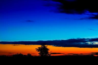 Keywords: sunset blue hour sky abendstimmung evening setting sun clouds dark clouds trees romantic incipient night day farewell silent rest nature long exposure