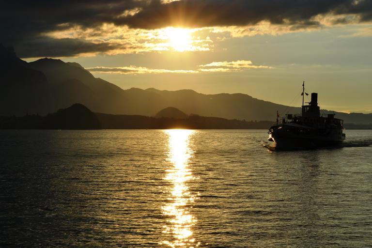 Keywords: sunset boat switzerland lake water landscape clouds cloud