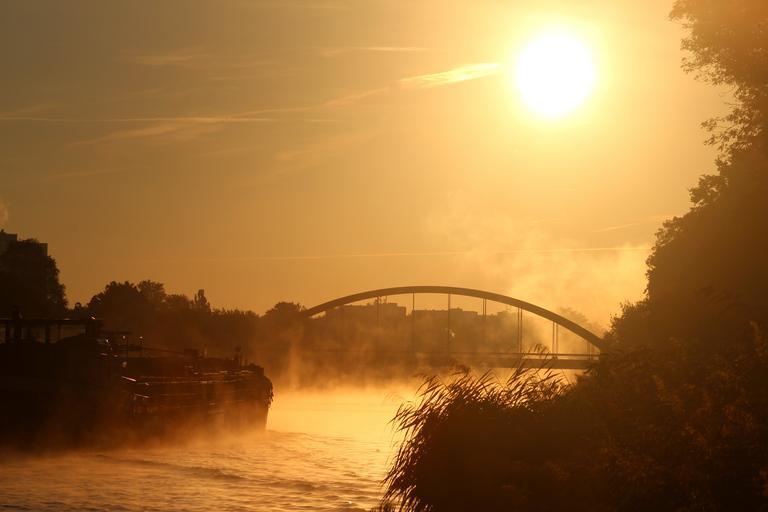 Keywords: sunset sun sunshine outdoor water waves bridge yellow boat ship public domain publicdomain sky License: Public Domain Dedication (CC0) Source: Unsplash License: Public Domain Dedication (CC0) Source: Unsplash