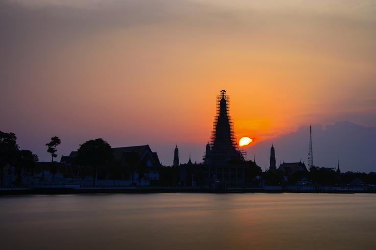 Keywords: sunset building architecture deity buddhism sacred heritage the sky orange evening thailand shadow