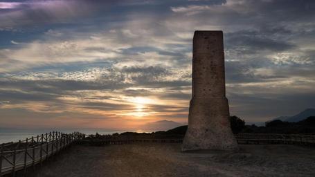 Keywords: sunset cabopino marbella malaga spain sky sea sun tower atalaya backlight andalusia horizon energy calm serenity stillness zen peace
