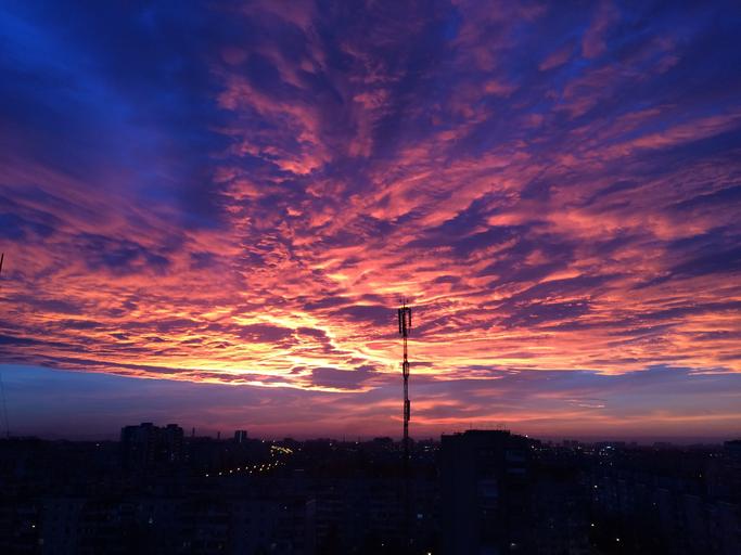 Keywords: sunset city view window sky night view from the window on the street
