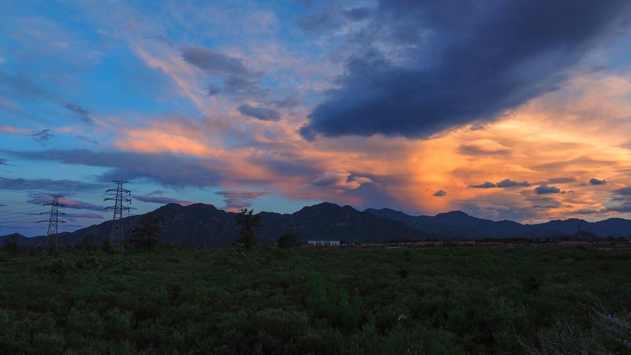 Keywords: sunset clouds mountains wild weather landscape follow nature outdoor beauty tranquil scene scenic electrical power