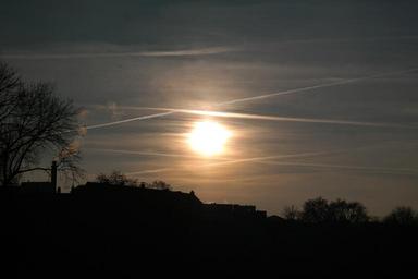 Keywords: sunset contrail sun sky clouds golden sparkle abendstimmung