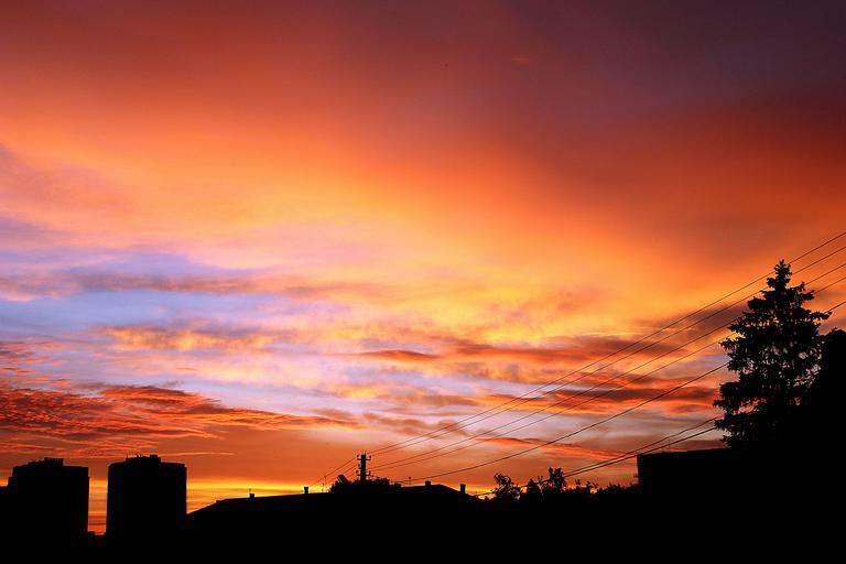 Keywords: sunset dusk silhouette landscape sky clouds power lines