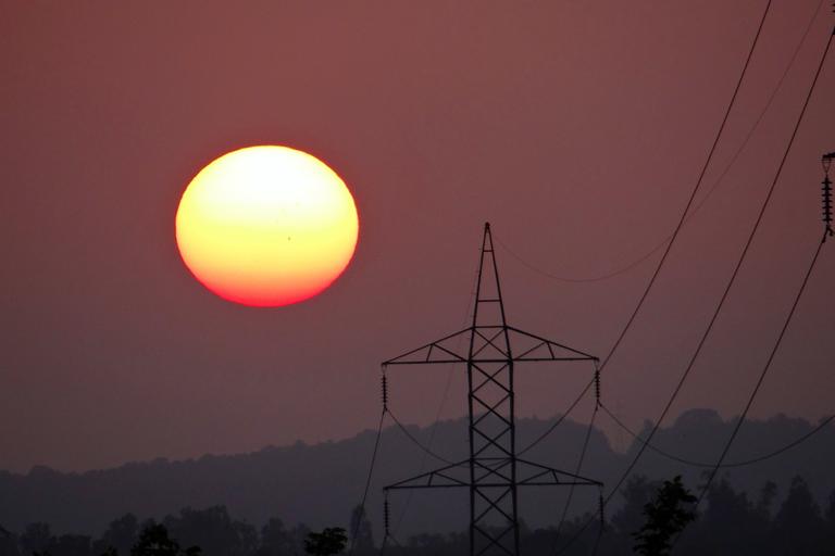 Keywords: sunset electric pylon electric tower shimoga karnataka india