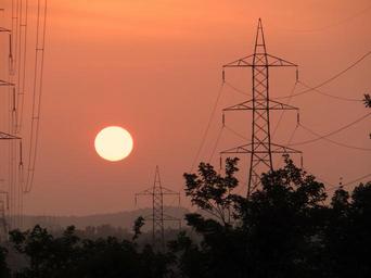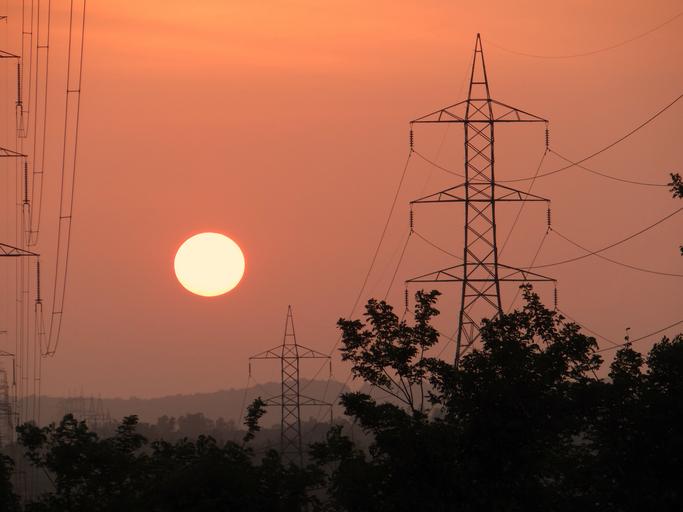 Keywords: sunset electric pylon electric tower shimoga karnataka india