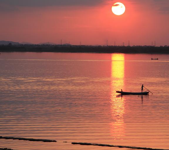 Keywords: sunset evening reflections sun nature landscape sky travel people orange light scenic golden