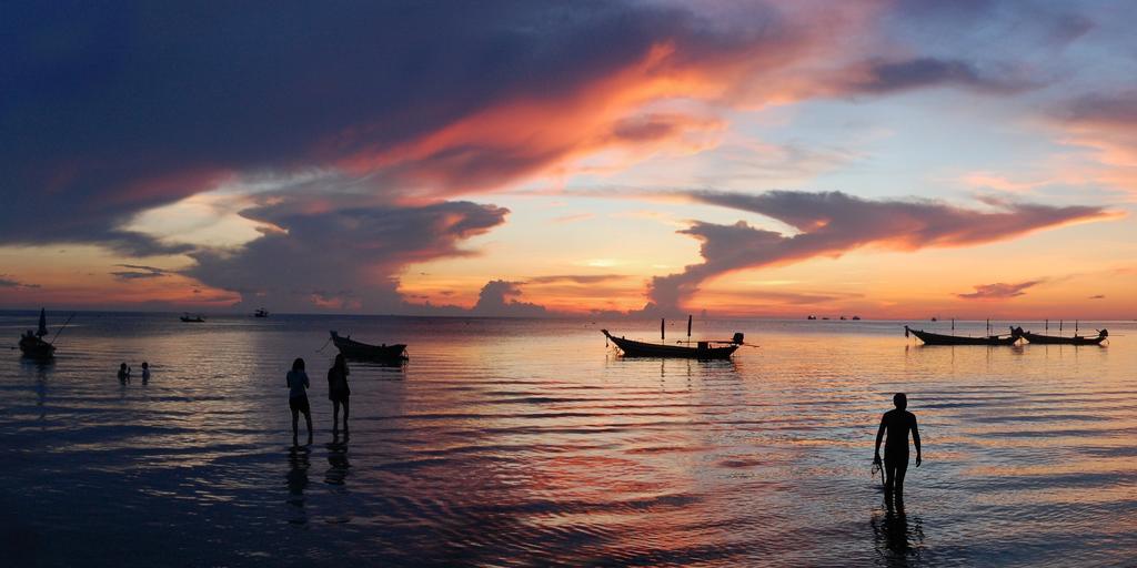 Keywords: sunset evening sea beach ko tao boat man horizon water seaside summer