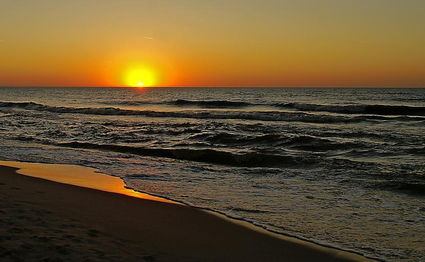 Keywords: sunset evening silhouettes of trees on the beach figure mood the sun sky the baltic sea solar flare evening light aura silhouettes the addition of nature twilight mystery last light the end of the day beach surf shoreline