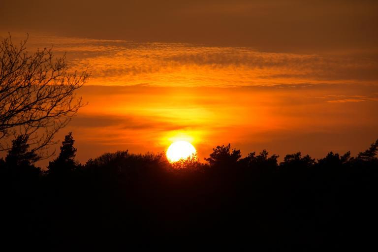 Keywords: sunset forest yellow orange mood abendstimmung evening heathland wahner pagan holiday sun romantic