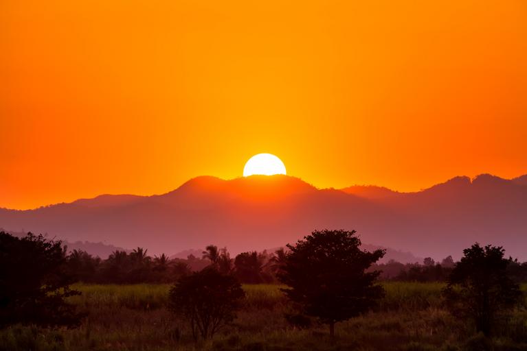 Keywords: sunset hill mountain sunset landscape outdoor scenery sunlight countryside field evening landscape