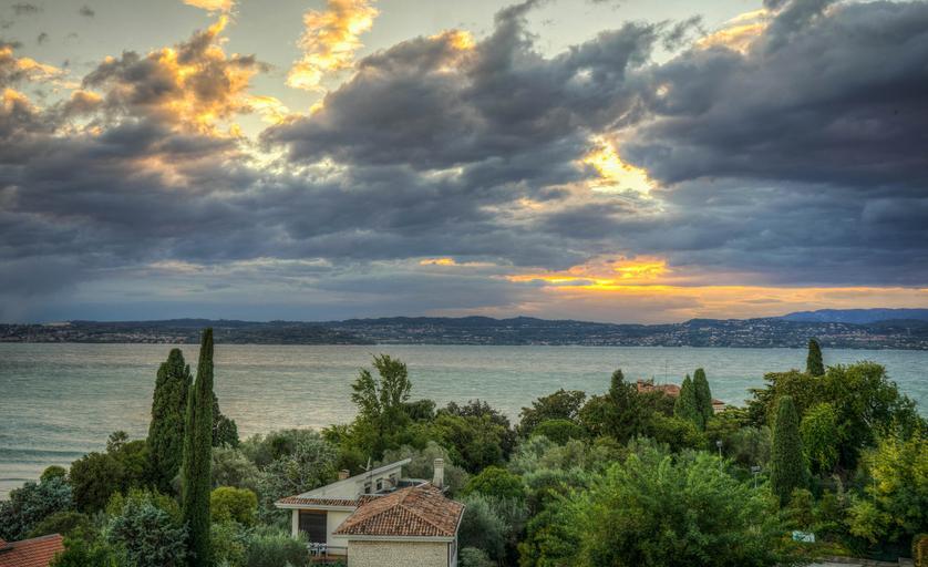 Keywords: sunset lake garda italy landscape water summer blue tourism travel town view lombardy scenery sirmione