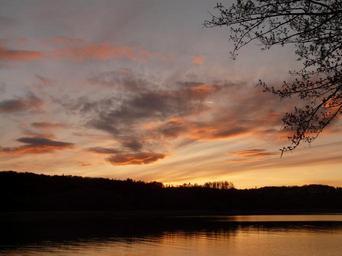 Keywords: sunset lake idyll landscape sky clouds water mirroring farbenspiel