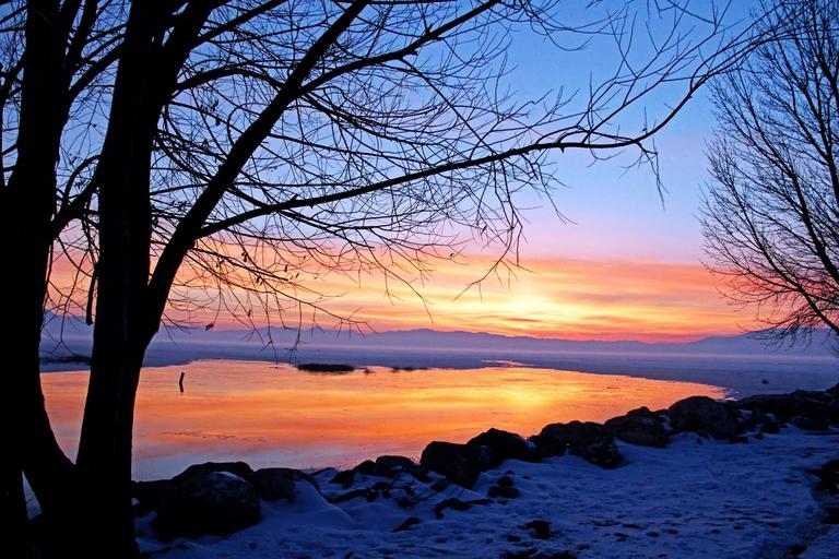 Keywords: sunset lake water sky nature landscape sun reflection blue sunrise summer evening cloud travel sea colorful calm tree mountain scenery silhouette horizon yellow outdoor