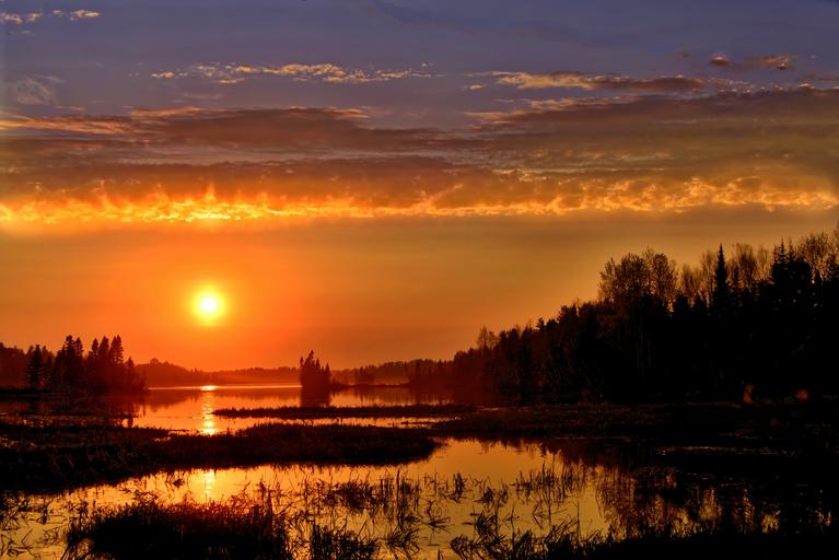 Keywords: sunset landscape sun clouds twilight summer lake sky colors trees evening nature québec canada