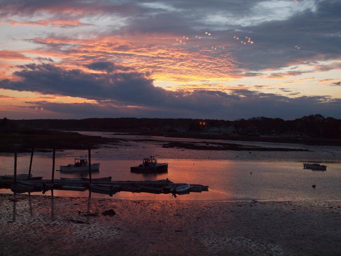 Keywords: sunset maine ocean boats harbor dock sky clouds outdoors scenic tranquil weather meteorology cloudscape environment nature