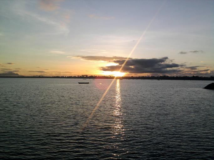 Keywords: sunset nature sea sun boat dawn silent calm
