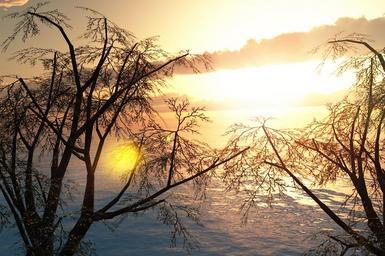 Keywords: sunset nature sky clouds tree branches golden bright sun colorful sea ocean water beautiful tranquil summer evening sky calm