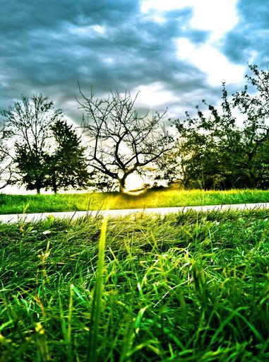 Keywords: sunset orchard landscape fruit tree hdr meadow