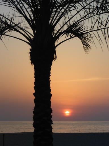 Keywords: sunset palm stra beach sea twilight evening sky sun