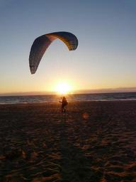 Keywords: sunset paraglider beach abendstimmung mood water sea evening sky romantic romance ocean back light coast sun afterglow