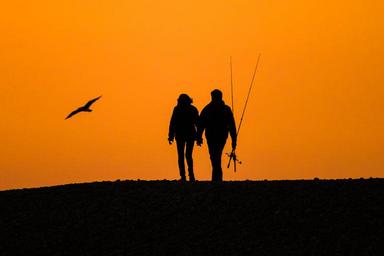 Keywords: sunset people summer beach silhouettes a couple of romantic