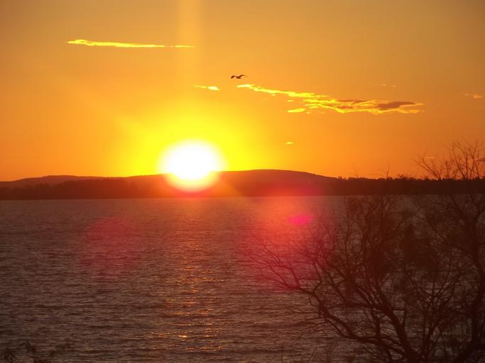 Keywords: sunset porto alegre guaíba landscape panorama brazil eventide bronze reflection bird