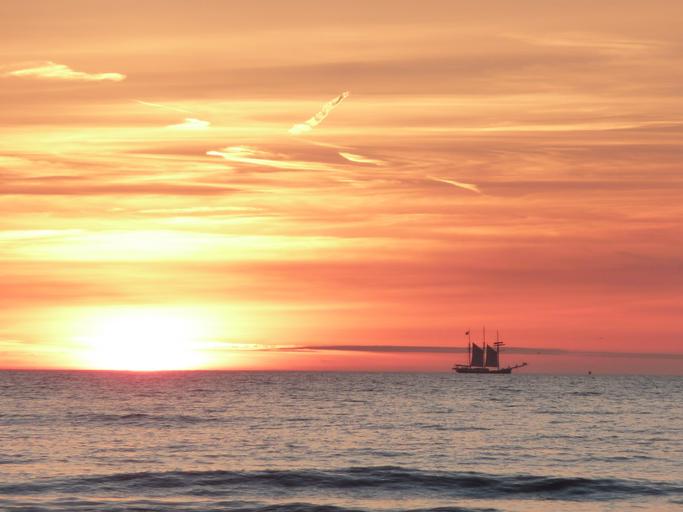 Keywords: sunset sailing boat sea holland setting sun abendstimmung ship sky