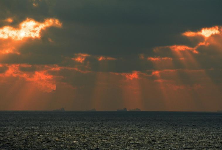 Keywords: sunset sea clouds horizon ocean evening sky sky sillhoutte container background water ships boot atlantic waters dusk nature lichtspiel lake sun