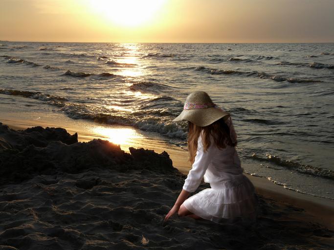 Keywords: sunset sea evening sand beach holidays summer holiday evening by the sea the sun girl