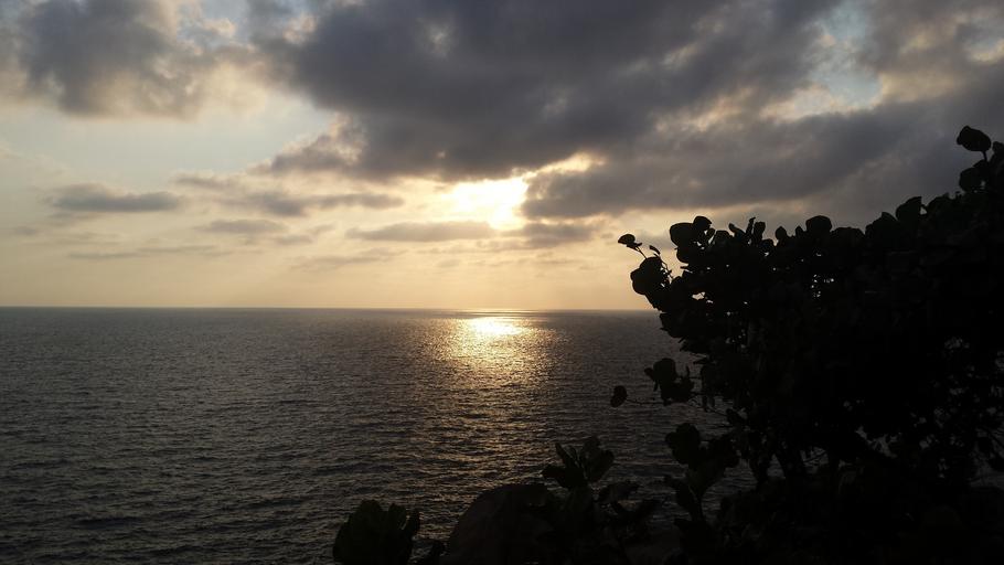 Keywords: sunset sea green flash beach landscape highlights background image evening sun clouds sky