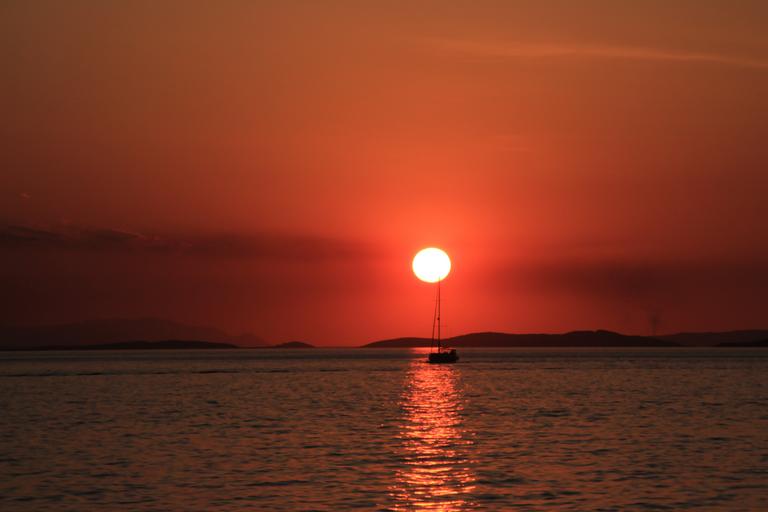 Keywords: sunset sea romantic evening sky afterglow abendstimmung sunlight boot sky mood dusk lichtspiel water sailing boat atmospheric evening sun twilight rest evening silhouette