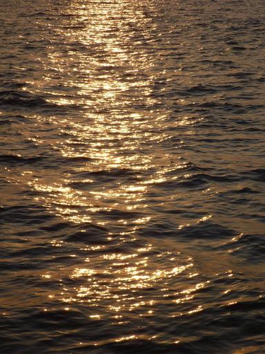 Keywords: sunset sea water waves calm reflexions ripples
