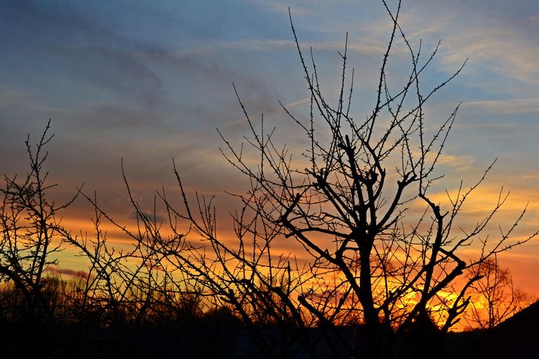 Keywords: sunset setting sun evening red evening evening sun landscape trees colorful sunset orange blue air evening sky silhouette nature brand sun
