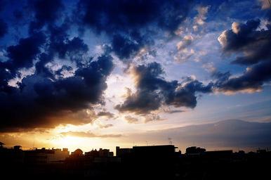 Keywords: sunset sky azure cloud evening sun silhouette light image view