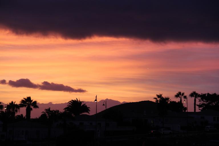 Keywords: sunset sky palm trees lights violet