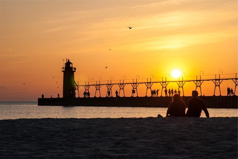 Keywords: sunset sky pier lighthouse silhouette dusk people couple man guy girl woman love romance beach sand water shore ocean sea
