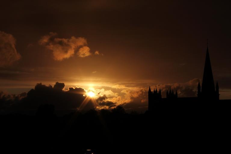 Keywords: sunset sky sun dusk orange horizon church evening sunlight