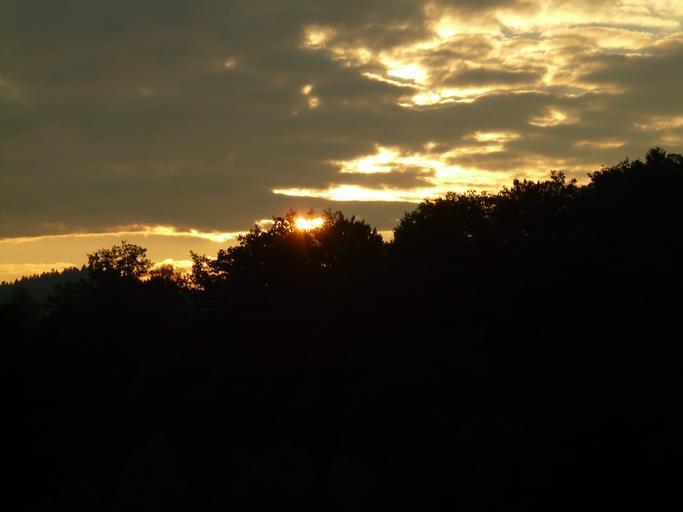 Keywords: sunset sun clouds sky dark evening twilight forest landscape idyll outlook nature rest gloss light rays cloud relief outline