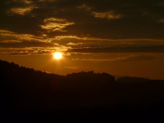 Keywords: sunset sun clouds sky dark evening twilight forest landscape idyll outlook nature rest gloss light rays cloud relief outline